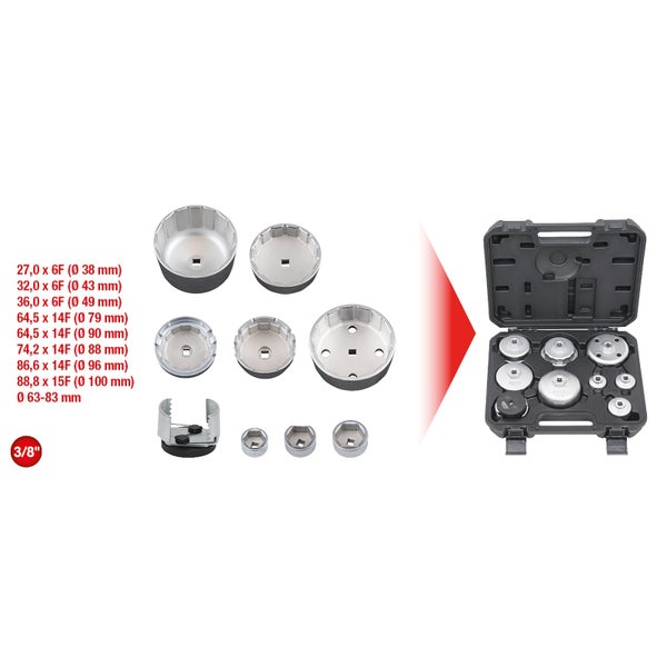 KS TOOLS Öldienstschlüssel-Satz für Ölfilter- und Filtergehäusedeckel 9tlg. - 150.9210