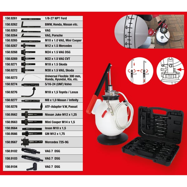 KS TOOLS Universal Getriebeöl-Füllsystem-Satz mit 23-tlg Adaptersatz - 150.9105