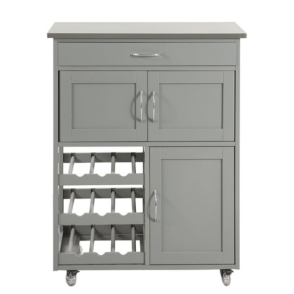 Küchenwagen mit Arbeitsplatte, Schubladen und Weinregal in Hellgrau FKW45-HG