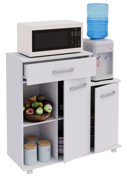 - eine Schubladen und zwei Drehtüren für ausreichend verdeckten Stauraum