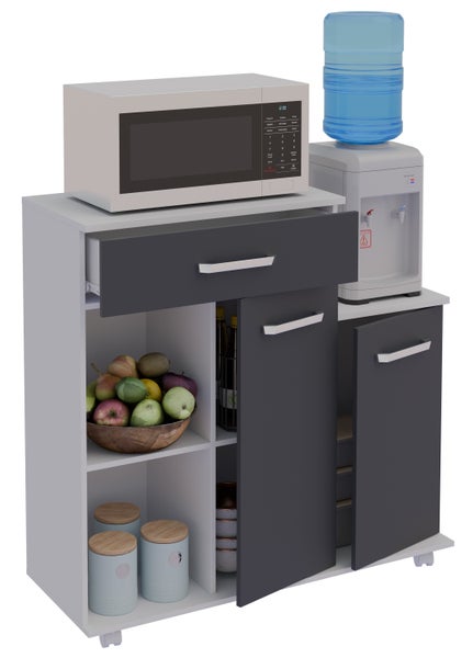 - eine Schubladen und zwei Drehtüren für ausreichend verdeckten Stauraum