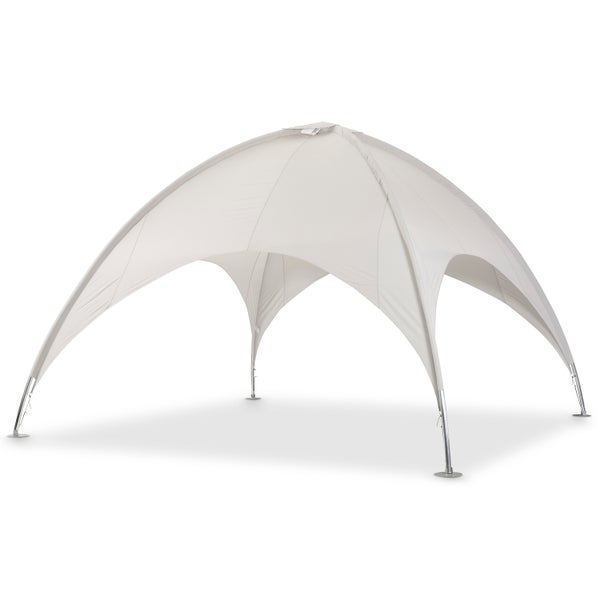 SCHATTENSPENDER – Das Dach aus wasserabweisendem Polyesterstoff bietet ihnen Schatten und Schutz; die helle, grauweiße Farbe gibt ihnen zeitgleich weiterhin das Gefühl im Freien zu sein - ideal für Hochzeiten oder Gartenpartys