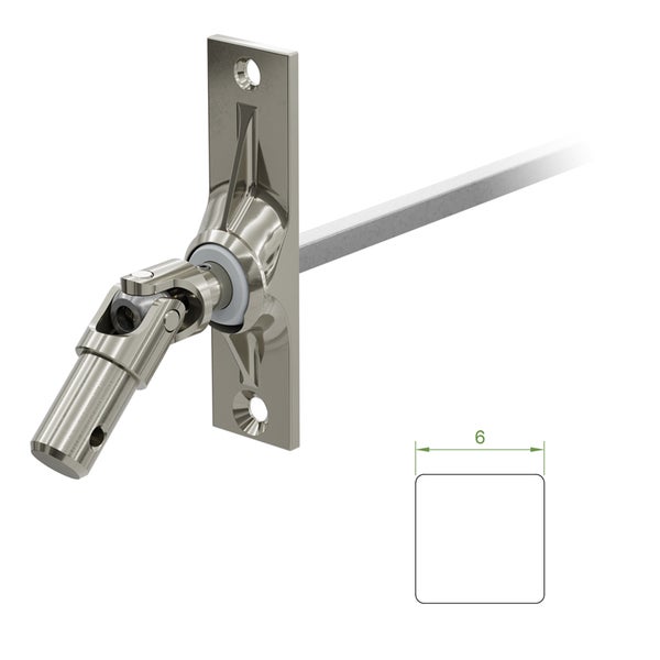 - Im Lieferumfang enthalten1 x Gelenklager 45 Grad mit einer Befestigungsplatte 22 x 85 mm, zwei Befestigungslöcher und einem Kurbelzapfen von 12,9 mm Durchmesser, Antrieb zum Getriebe 6 mm Vierkant - Länge 300 mm