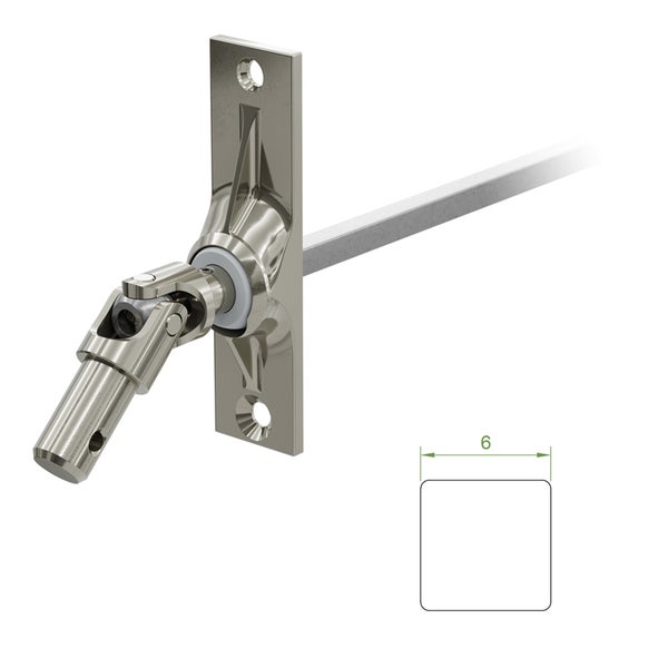 - Im Lieferumfang enthalten1 x Gelenklager 45 Grad mit einer Befestigungsplatte 22 x 85 mm, zwei Befestigungslöcher und einem Kurbelzapfen von 11,9 mm Durchmesser, Antrieb zum Getriebe 6 mm Vierkant - Länge 300 mm