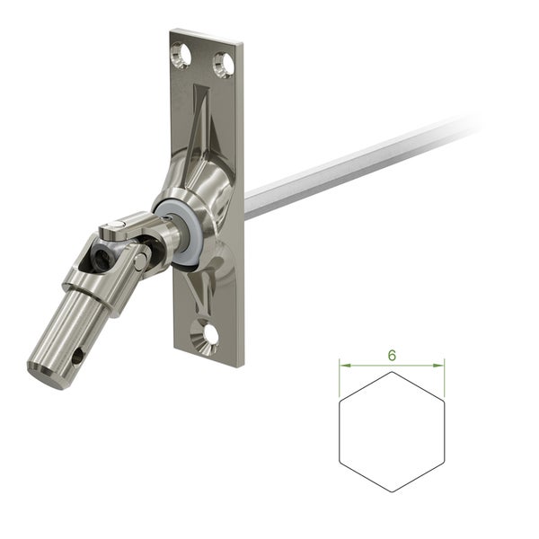 - Im Lieferumfang enthalten1 x Gelenklager 45 Grad mit einer Befestigungsplatte 22 x 85 mm, drei Befestigungslöcher und einem Kurbelzapfen von 11,9 mm Durchmesser, Antrieb zum Getriebe 6 mm Sechskant - Länge 300 mm