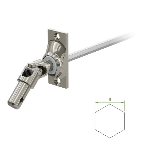 - Im Lieferumfang enthalten1 x Gelenklager 45 Grad mit einer Befestigungsplatte 22 x 52 mm, zwei Befestigungslöcher und einem Kurbelzapfen von 11,9 mm Durchmesser, Antrieb zum Getriebe 6 mm Sechskant - Länge 300 mm