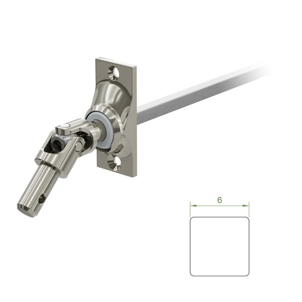 - Im Lieferumfang enthalten1 x Gelenklager 45 Grad mit einer Befestigungsplatte 22 x 52 mm, zwei Befestigungslöcher und einem Kurbelzapfen von 9,9 mm Durchmesser, Antrieb zum Getriebe 6 mm Vierkant - Länge 300 mm