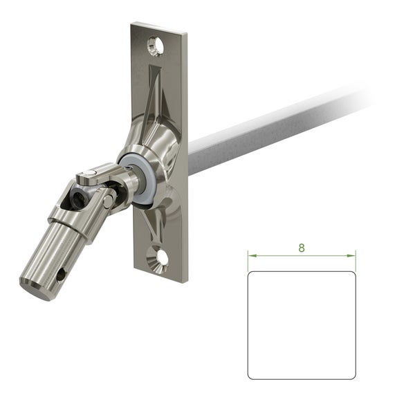 - Im Lieferumfang enthalten1 x Gelenklager 45 Grad mit einer Befestigungsplatte 22 x 85 mm, zwei Befestigungslöcher und einem Kurbelzapfen von 12,9 mm Durchmesser, Antrieb zum Getriebe 8 mm Vierkant - Länge 300 mm