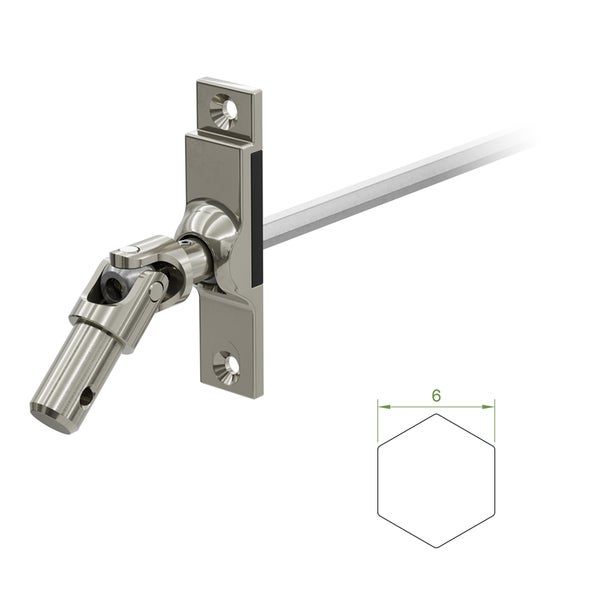 - Im Lieferumfang enthalten1 x Gelenklager 45 Grad mit einer Befestigungsplatte 17 x 73 mm, zwei Befestigungslöcher und einem Kurbelzapfen von 11,9 mm Durchmesser, Antrieb zum Getriebe 6 mm Sechskant - Länge 300 mm