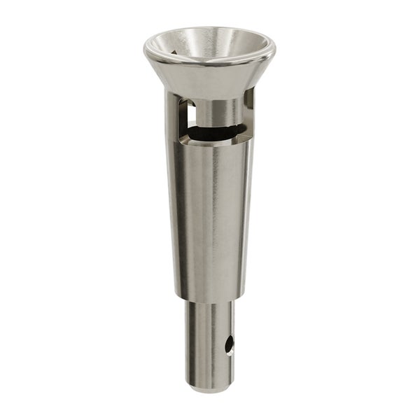 Kupplungstrichter mit Zapfen für abnehmbare Kurbelgestänge.Dank des Bajonettverschluss kann das Kurbelgestänge sicher eingehängt werden und hängt sich weder bei Rechts- noch Linksdrehung selbstständig aus.