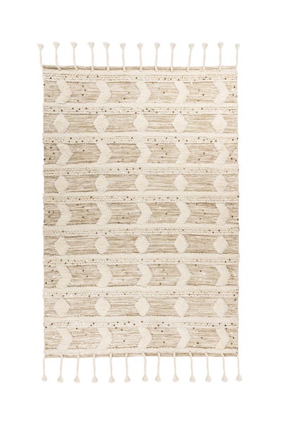 Dieser Wollteppich bringt das Gefühl von Gelassenheit, Einklang und Freiheit in die eigenen vier Wände. Ob Boho, Hippie oder Ethno genannt, dieses Accessoire ist nicht nur Einrichtungsgegenstand sondern Lebensgefühl. Mit seiner charmanten Erscheinung lädt er zum Verweilen ein und lässt verspielt das Träumen am Tag zu. Als Teil eines harmonischen Gesamtbildes sind der Kreativität keine Grenzen gesetzt. Zudem punktet er mit seiner Gemütlichkeit besonders beim wolligen Laufempfinden. Ein absoluter Hingucker, der es versteht in der Innenraumgestaltung mit Stilen zu gehen oder sie bewusst zu brechen.