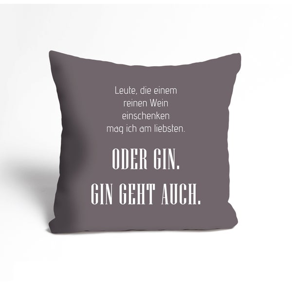 Kuschelkissen, Kissenhülle, Kissenbezug Schriftzug Wein & Gin PI0588_40x40cm
