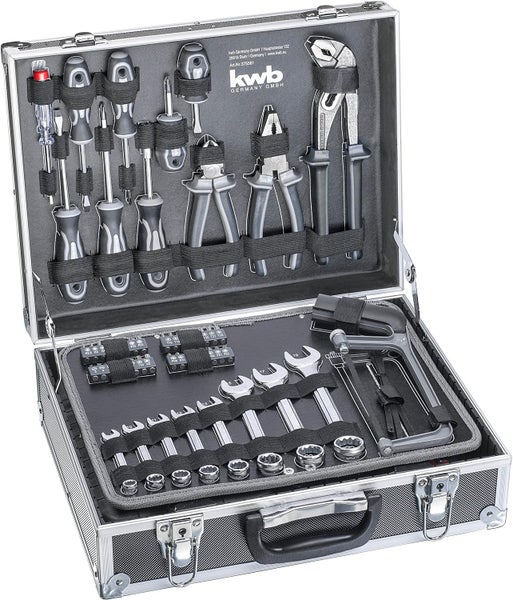 - Im Lieferumfang enthaltenkwb Heimwerker-Set, 199-teiliger Werkzeug-Koffer inkl. Werkzeug-Set bestückt, im Alu-Koffer