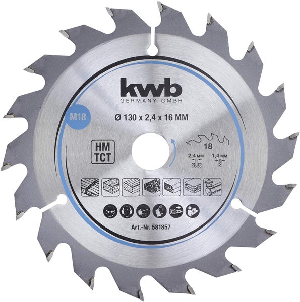 kwb Kreissägeblatt 130 x 16 mm, schneller Schnitt, Sägeblatt geeignet für Weich- und Hartholz, Tischlerplatten und Spanplatten