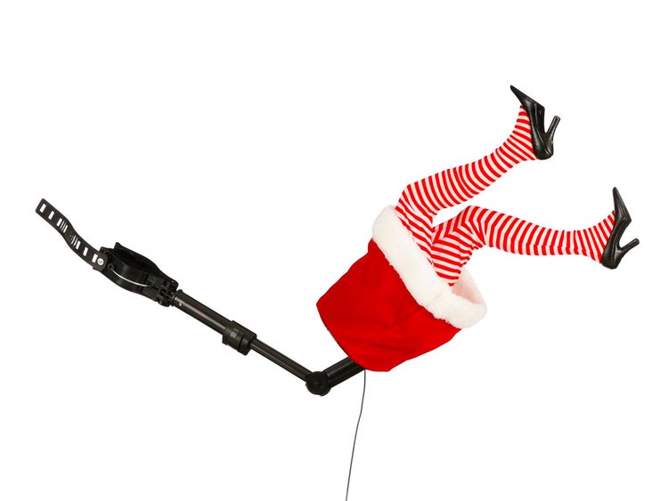 Ein lustiger Weihnachtsschmuck, der die strampelnden Füße von Mrs. Santa darstellt.