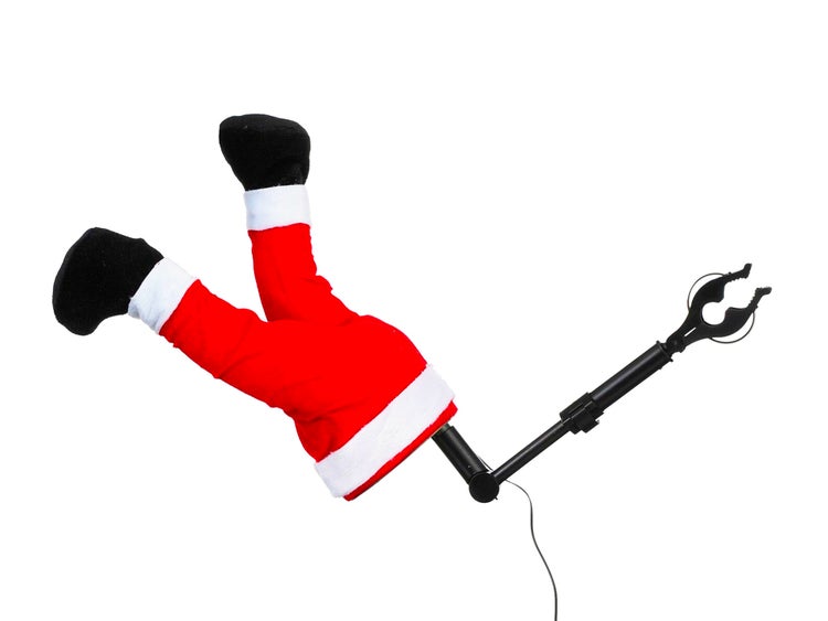 Eine lustige Weihnachtsdekoration mit den strampelnden Füßen des Weihnachtsmanns.