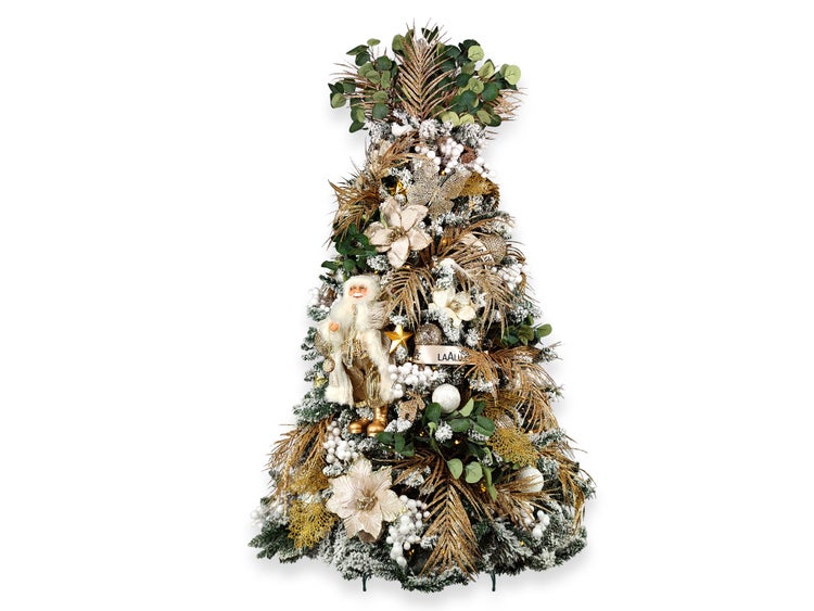 LAALU Dekorierter künstlicher Weihnachtsbaum mit 106 Ornamenten NEGATIVE CHAMPAGNE 210 cm Baum mit Ständer und Weihnachtsschmuck