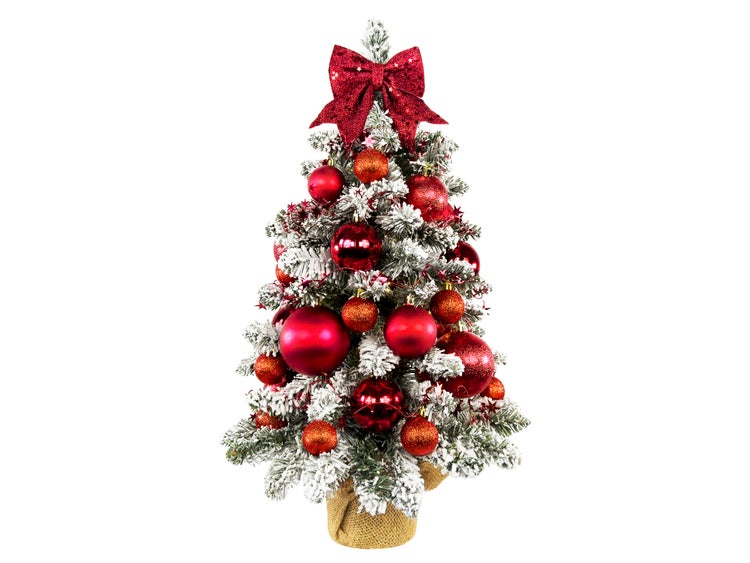 LAALU Dekorierter künstlicher Weihnachtsbaum RED CHRISTMAS 60 cm mit LED-Licht im Topf