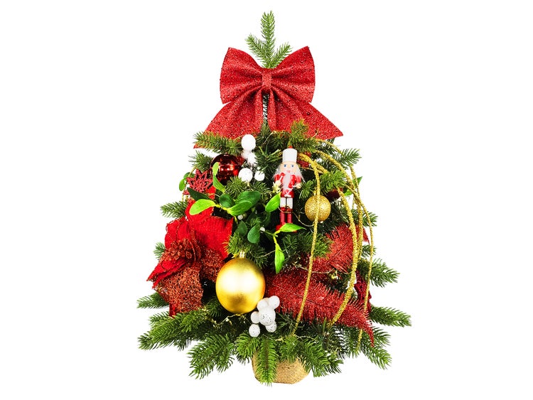 LAALU Dekorierter künstlicher Weihnachtsbaum Roter Nussknacker II 60 cm mit LED-Beleuchtung IN FLOWER