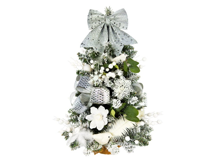 LAALU Dekorierter künstlicher Weihnachtsbaum WHITE MELODY 60 cm mit LED-Beleuchtung IN FLOWER