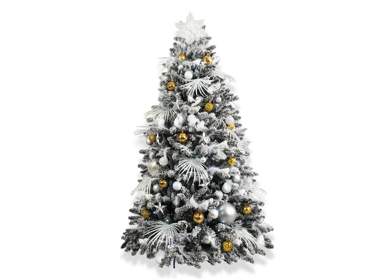 - AusstattungWeihnachtsbaum mit Schmuck, Weihnachtsbaum mit Schnee