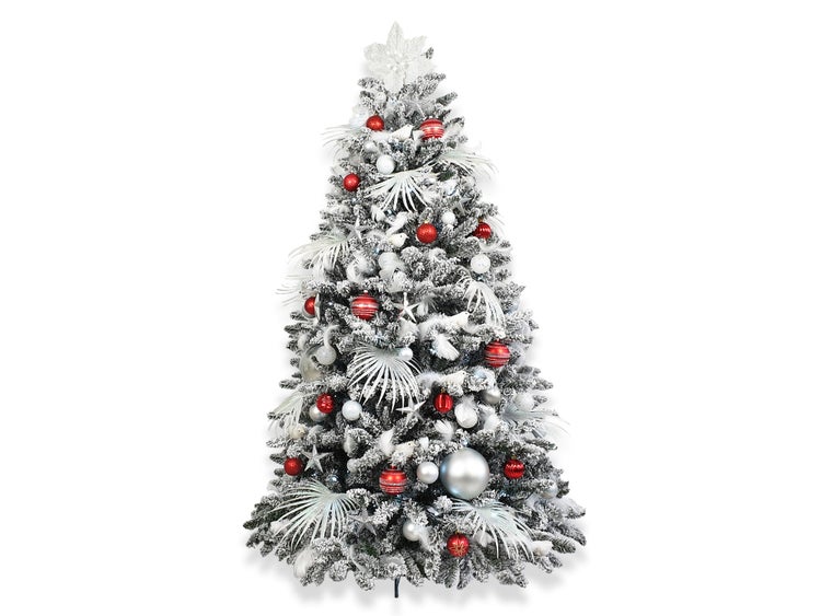 - AusstattungWeihnachtsbaum mit Schmuck, Weihnachtsbaum mit Schnee