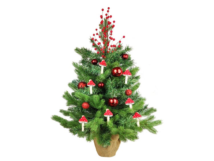LAALU Geschmückter künstlicher Weihnachtsbaum MUCHOMÚRYKA 60 cm mit LED-BELEUCHTUNG IM TOPF