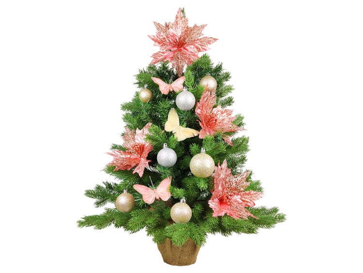 Einfach aus der Verpackung nehmen, die Zweige mit Ornamenten leicht anpassen und schon ist der Baum fertig.