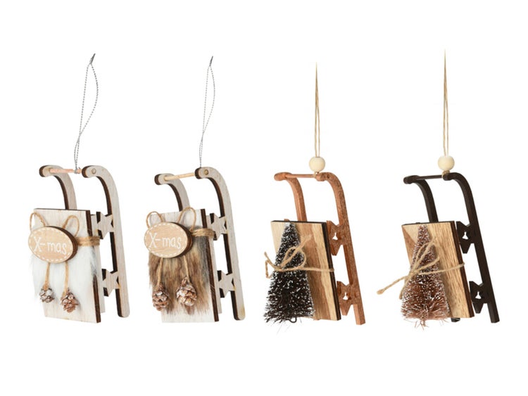 LAALU Satz von 4 Ornamenten: Ornamente Schlitten Mix 11,5 cm