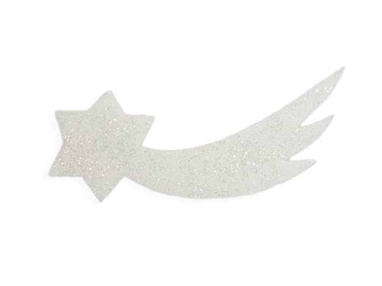 Weißer Komet aus Schaumstoff mit Glitzer, Größe 30 x 12 cm.