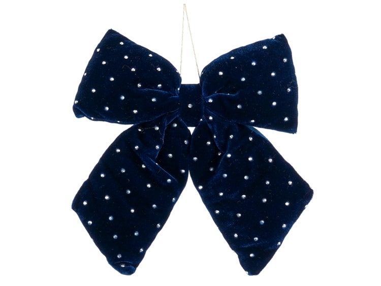 Die elegante blaue Satinschleife, die mit feinen Strasssteinen verziert ist, verleiht Ihrer Weihnachtsdekoration ein luxuriöses Aussehen.