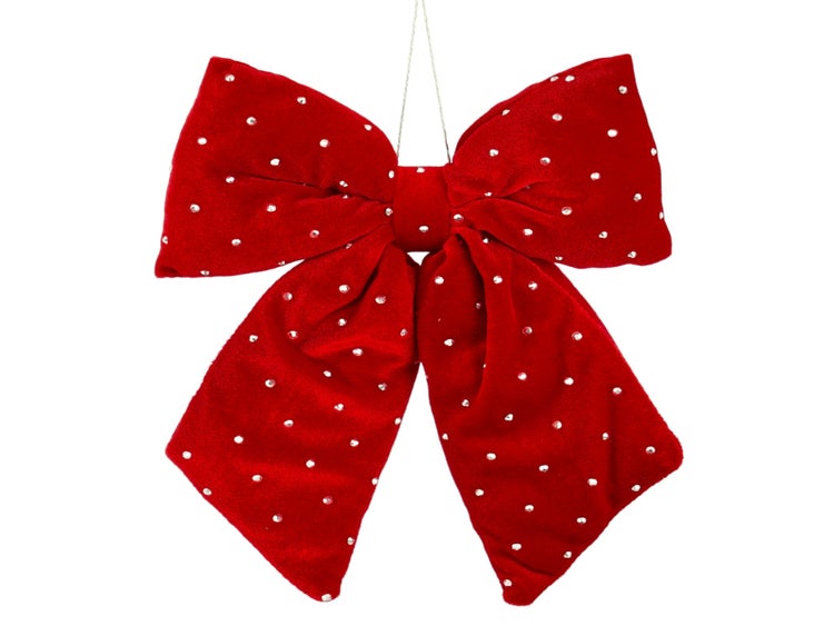Die elegante rote Satinschleife mit feinen Strasssteinen verleiht Ihrer Weihnachtsdekoration ein luxuriöses Aussehen.