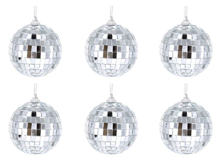 LAALU Set mit 6 Ornamenten: silberne Glitzer-Diskokugel 6 cm