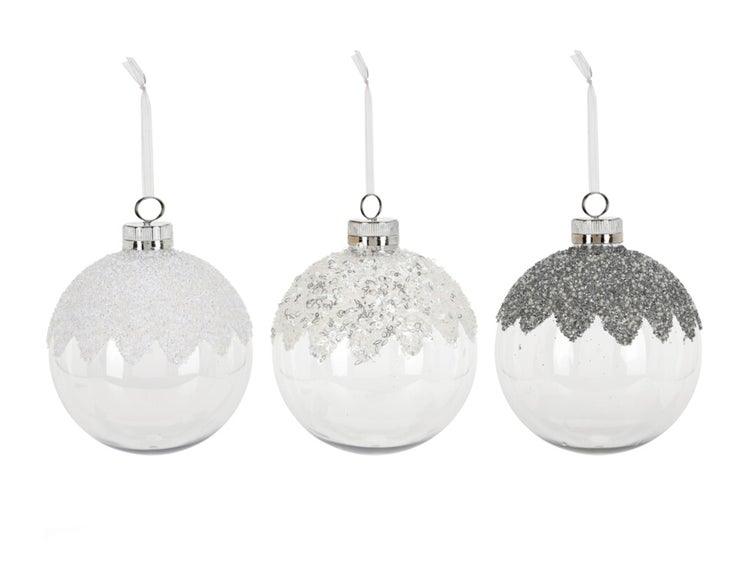 LAALU Set von 3 Ornamenten: Ornamente rund klar mit Pailletten Mix 20 cm