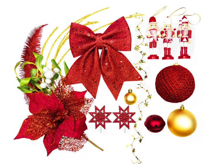 LAALU Set von Weihnachtsschmuck 34 Stück in Box Rot Nussknacker für Weihnachtsbaum bis zu 100 cm