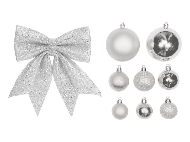 Das SILVER CHRISTMAS Ornament-Set verleiht Ihrer Weihnachtsdekoration einen eleganten und frostigen Touch.