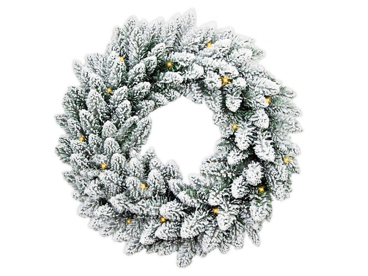 Dieser Kranz gehört zur Viola-Weihnachtsbaum- und Girlandenserie, die sich ebenfalls durch ihre perfekte Schneeoptik auszeichnet.