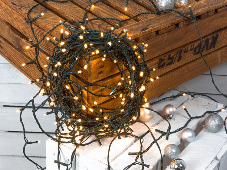 Diese beliebte und oft verwendete Lichterkette mit LED-Lichtern in Weiß ist eine tolle Ergänzung für jede Weihnachtsdekoration.