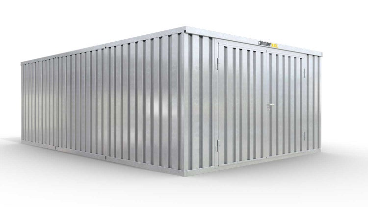 Lagercontainer Gerätehaus L3 – 25 qm, H2115 x B4050 x T6520 mm, verzinkt, ohne Fußboden, 2750 mm Doppelflügeltür mittig in Stirnseite, zerlegt