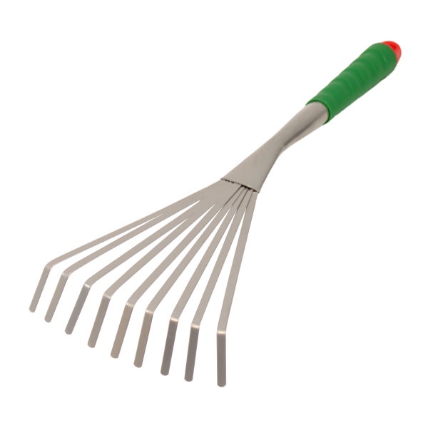 Der kleine Laubrechen aus Stahl eignet sich durch seine schmale Arbeitsbreite zum Zusammenharken von Unkraut, Laub und Gras auch an engen Stellen im Beet.Durch den gewellten Kunststoffgriff liegt der Handgrubber gut in der Hand.
