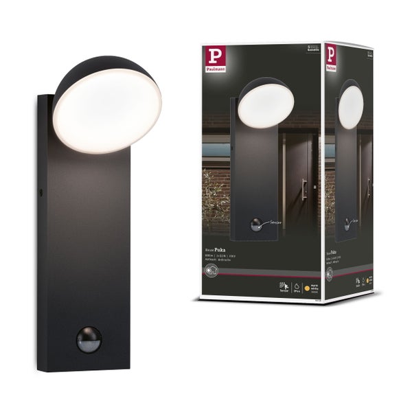 Außenleuchten in Küstennähe unterliegen härteren Umwelteinflüssen als Außenleuchten im Landesinneren. Der Salzgehalt der Luft greift hier Metalle und Kunststoffe stärker an. Die Außenwandleuchte Puka findet ihre Anwendung vor allem an Außenwänden in Küstennähe. Die anthrazitfarbene Oberfläche der Leuchte ist besonders korrosionsbeständig, daher wird die Leuchte von der salzhaltigen Luft weniger angegriffen. Das diffuse warmweiße Licht sorgt für gleichmäßige Lichtverteilung und blendfreie Ausleuchtung. Mit einem IP-Schutz 44 ist die Leuchte spritzwassergeschützt. Dank des integrierten Bewegungsmelders wird es automatisch eingeschaltet, sobald sich jemand nähert. Der Dämmerungssensor schaltet die Leuchte bei Dunkelheit an. Die Empfindlichkeit des Dämmerungssensors und die Beleuchtungsdauer können eingestellt werden.