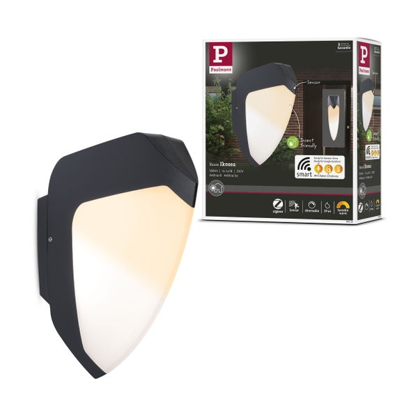 LED Außenwandleuchte Smart Home Zigbee 3.0 Ikosea insektenfreundlich IP44 50x203 mm Tunable Warm 4,4W 350lm 230V Anthrazit Kunststoff