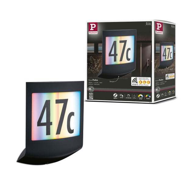 Die moderne und smarte Außenwandleuchte Padea kann mit einer Hausnummer ergänzt werden und bringt Licht an die Außenwand. Sie trägt zur besseren Orientierung in der Dunkelheit bei und sorgt für mehr Sicherheit. Mit der Tunable White Weißlichtsteuerung lässt sich die Farbtemperatur der Leuchte individuell und stufenlos einstellen. RGBW-Funktion bietet freie Wahl bei der Lichtfarbe. Über die Zigbee 3.0-Funktion lässt sich die Farbtemperatur und Lichtfarbe einstellen. Bei Dunkelheit schaltet sich die Leuchte mit der ausgewählten Lichtfarbe und 30 % Helligkeit ein. Sobald sich jemand annähert, wird das Außenlicht durch den verbauten Bewegungsmelder auf 100 % Helligkeit geschaltet und nach etwa 30 Sekunden wieder zurück auf die vorher eingestellte Farbe und 30 % Helligkeit. Zigbee 3.0 ist ein Funkübertragungsprotokoll, das Geräte verschiedener Hersteller miteinander vernetzt. Nutzbar mit Smart Home Gateways, die über eine Zigbee 3.0 Schnittstelle verfügen.