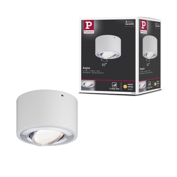 Dimmen ohne Dimmer – die 1-flammige Deckenleuchte Argun lässt sich durch mehrfaches Betätigen eines handelsüblichen Lichtschalters in drei Stufen dimmen. Zudem besticht sie durch reduziertes Design und lässt sich nach Bedarf ausrichten. In weiteren Ausführungen erhältlich.
