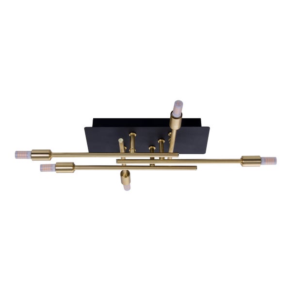 Diese Deckenleuchte aus unserer ANCONA-Kollektion wird Sie begeistern! Deckenleuchten sind optimal, um für eine gleichmäßige Beleuchtung im Raum zu sorgen. Sie strahlen das Licht breitflächig ab, sodass jede Ecke erhellt wird, und tragen zu einer einladenden und hellen Stimmung bei. Industrial Style, kantige Gestaltung und eine außergewöhnliche Optik, ideal für alle, die es außergewöhnlich und hochwertig mögen! Die Leuchte ist aus Metall gefertigt und in messing gehalten. Die Maße der Deckenleuchte betragen 45,1 cm x 25,2 cm x 9 cm (Länge x Breite/Tiefe x Höhe). Diese Deckenleuchte ist die perfekte Lösung für die unterschiedlichsten Beleuchtungsanforderungen. Dank der G9 Fassung steht Ihne eine große Auswahl an Leuchtmitteln zur Verfügung. 5 der Fassungen sorgen für genügend Licht. Durch die Möglichkeit, das Leuchtmittel selbst zu wechseln, sind Sie nicht nur unabhängig, sondern sparen auch bares Geld. Diese Leuchte entspricht der Klasse 1. Für den Netzbetrieb dieses Geräts wird eine Netzspannung von 220-240V ~ 50Hz benötigt. Diese leistungsfähige Leuchte bietet eine Gesamtleistung von 205 Watt. Mit unserer Deckenleuchte verleihen Sie Ihrem Zuhause das optimale Lichtambiente und sorgen für ein geschmackvolles Ambiente.