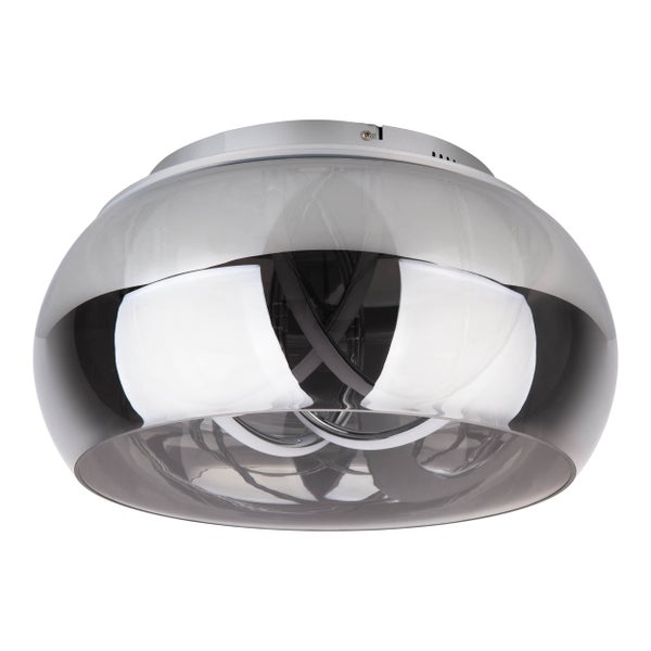 Diese Deckenleuchte aus unserer MALOU-Kollektion wird Sie begeistern! Mit einer Deckenleuchte kann ein Raum optimal ausgeleuchtet werden. Sie verbreitet das Licht gleichmäßig und erreicht jede Ecke, was eine freundliche und lichtdurchflutete Atmosphäre erzeugt. Modern Style, kugelförmige Gestaltung und eine elegante Optik, perfekt für alle, die es elegant und edel mögen! Die Leuchte in chrome aus Metall und Glas ist ein echter Blickfang in jedem Raum. Die smokeye Oberfläche verleiht dem Schirm ein elegantes Aussehen. Die Deckenleuchte misst 45 cm in der Länge, 45 cm in der Breite/Tiefe und 23,5 cm in der Höhe. Somit hat die Leuchte einen Durchmesser von 45 cm. Die Deckenleuchte verfügt über eine Fernbedienung. Mit ihr, ausgestattet mit 384 LED auf 1 LED Platine, bringen Sie Licht ins Dunkel. Ein Experte kann das Leuchtmittel fachgerecht austauschen. Diese Leuchte entspricht der Klasse 2. Dieses Gerät ist für den Betrieb am Stromnetz ausgelegt und funktioniert mit einer Netzspannung von 220-240V ~ 50Hz. Die 30 Watt starke Leuchte liefert Ihnen 700 Lumen um den Raum zu erhellen. 6500 Kelvin Lichttemperatur ergeben eine gute und funktionelle Beleuchtung. Die Leuchte kann gedimmt und somit dem individuellen Lichtbedarf angepasst werden. Diese Deckenleuchte wird mit der innovativen CCT Technologie geliefert, mit der Sie die Lichttemperatur optimal auf die jeweilige Situation anpassen können. Eine Nachtlichtfunktion sorgt für ein sanftes, gedämpftes Licht, das Orientierung in der Dunkelheit bietet, ohne die Augen zu blenden. Sie ist ideal, um eine beruhigende Atmosphäre zu schaffen, Energie zu sparen und zeitgleich Sicherheit in Schlafzimmern, Fluren oder Kinderzimmern zu gewährleisten. Unsere qualitativ hochwertigen Deckenleuchten sorgen für das ideale Lichtambiente und verleihen Ihrem Zuhause Komfort und Stil in jedem Raum.