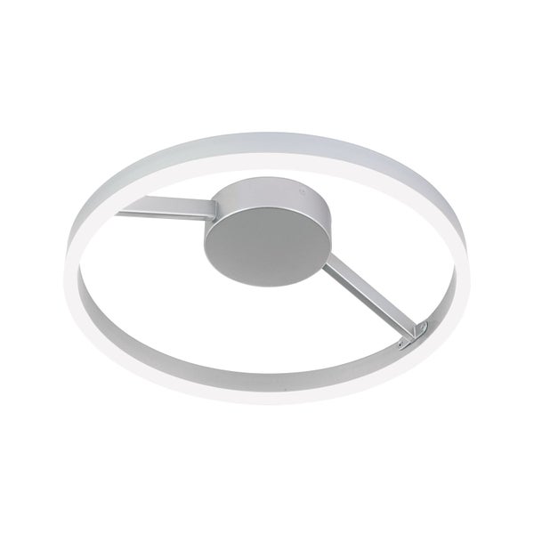 Mit ihrem klaren, reduzierten Design fügt sich diese runde LED-Deckenleuchte in Titan/Silber matt harmonisch in moderne Wohnräume ein. Die elegante Konstruktion besteht aus einem Metallrahmen und zwei klaren Verbindungselementen zum Deckenbaldachin – stilvoll, schlicht und dekorativ zugleich.