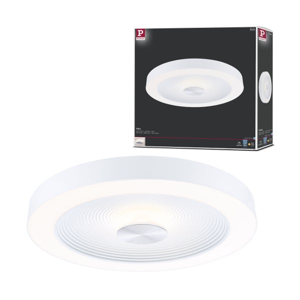 Die Volea Wand- und Deckenleuchte in Weiß, Silber mit einem Durchmesser von 400mm ist mehr als eine gewöhnliche Beleuchtungslösung. Mit ihrer einzigartigen Kombination aus direkter und indirekter Beleuchtung verstärkt durch den dreidimensionalen Tiefeneffekt im inneren Kreis der Leuchte, wird jeder Raum in ein gemütliches und atmosphärisches Ambiente verwandelt. Das warmweiße Licht mit einer Farbtemperatur von 3000 Kelvin sorgt für eine angenehme Wohlfühlatmosphäre, egal ob im Wohnzimmer, Schlafzimmer oder sogar im Badezimmer dank des IP 44 Schutzes. Sie ist stufenlos dimmbar, sodass die Helligkeit angepasst werden kann. Zudem kann die Leuchte auch als Pendel mittels separater Halterung abgehängt werden, um das Licht gezielt über dem Esstisch oder Küchentresen zu platzieren.