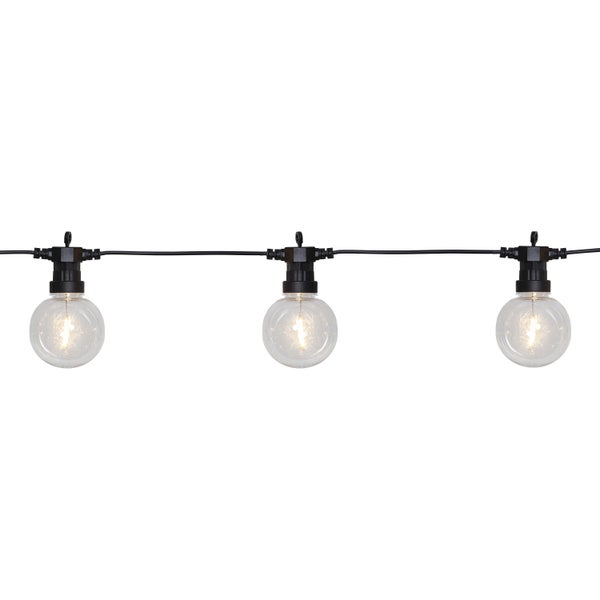 - Die LED-Party-Lichterkette besteht aus 10 Leuchtmitteln, welche an einem 4,5 Meter langen, schwarzen Kabel befestigt wurden
