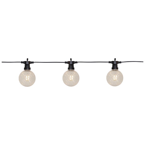 - Die LED-Lichterkette besteht 10 Kunststoffkugeln mit einem Rauten-Muster in der Oberfläche, welche an einem schwarzen Kabel befestigt wurden